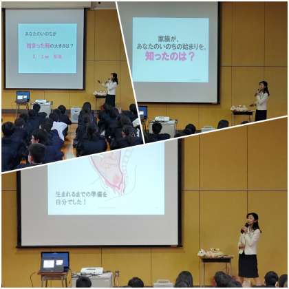 そして講義では、みんなの命は絶えず世話を掛けてくれた周りの人たちのおかげで存在しているということ、その命を次に繋いでいくために今自分たちが守っていくべきこと、異性に対してやっては行けないことなどを、映像やスライドを駆使して熱く、そして語りかけるように伝えてくださいました。