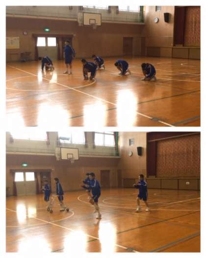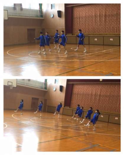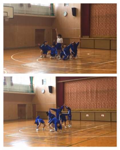 これまでの授業で習得した7つの課題のステップを必ず取り入れ、考えを出し合って1つの作品に構成しました。上手なステップ・フォーメーションの工夫---それぞれこだわりのポイントはちがうかもしれませんが、どのチームもリズムに乗って楽しく生き生きと踊れていたと思います。