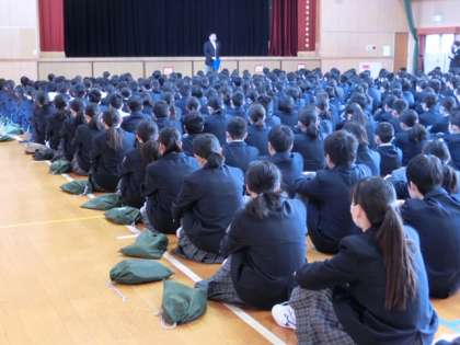 2月3日(月)朝の全校集会をおこないました。いつもどおり整然とした集合状態で集会をおこなうことができました。