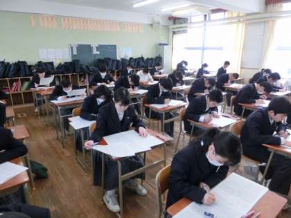 昨日・今日・明日の3日間、1・2年生は学年末テストに取り組んでいます。今日は、理科・社会・技術家庭の3教科のテストです。