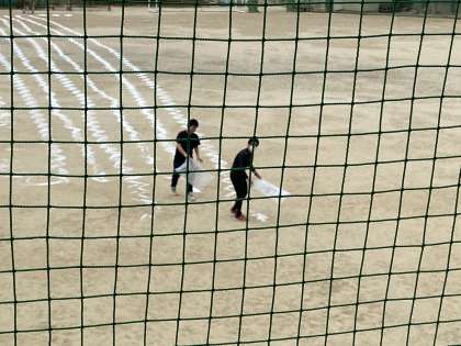 休業中であるので、先日、先生方はグラウンドに「にがり」をまきました。