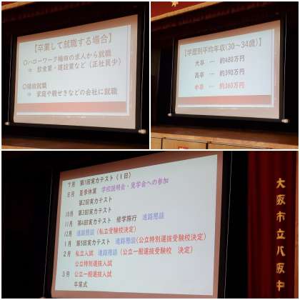 令和2年(2020年)6月19日(金)、3年生へ進路学習会を行いました。
