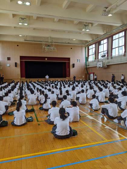 通常授業が始まって1週間が過ぎました。隔週で全校集会と学年集会を交互に行う予定です。しっかりと連絡を聞き、先輩たちのように自分で考えて行動できるようになってください。