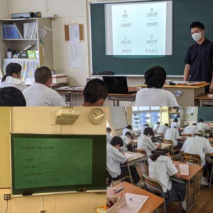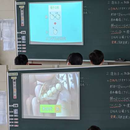 今日の3時間目の授業です。社会科は産業革命で「もし100万円あったら?」の質問から始まっていました。果たしてどんな展開の授業になっていったのでしょうか?英語科は、英文を聞いて、しっかり聞き取れているかを確認していました。Japanese Pop Culture を3つ答えることはできたかな?国語科は四字熟語の小テストをおこなっていました。理科はメンデルの法則で、映像を見て「丸いまめ」と「しわのあるまめ」について学んでいました。