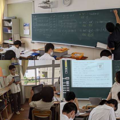 2時間目の授業の様子です。【社会】第一次世界大戦はすごく複雑な状況で始まったようです。今日習ったことはしっかり復習しておいた方がよさそうですね。(1組)【数学】因数分解の問題を解いていました。去年、3年生の授業で使った問題です。よかったら解いてみてください。因数分解(2組)【技術】発表する人を撮影していました。後で自分の発表を見て振り返ります。(3組)【家庭】幼児が遊ぶおもちゃについて考えていました。「やわらかい」「とがっていない」(4組)