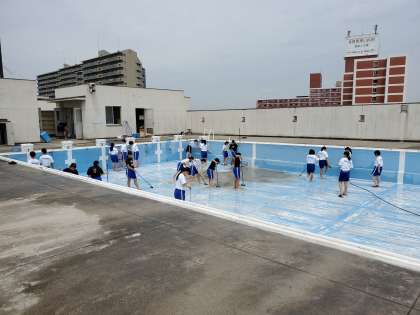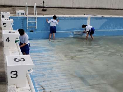 6月27日(土)、陸上部員と女子バスケットボール部員でプールの清掃を行いました。