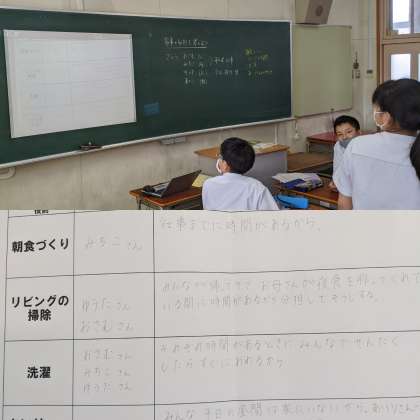 【家庭】家事の役割について発表していました。(2組)