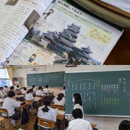 【国語】文法を学習していました。「未然」「連用」「終止」「連体」「仮定」「命令」懐かしい感じがしました。(4組)