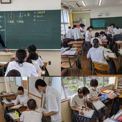 【理科】血管の話で、血しょうが毛細血管から染み出すと組織液になるという説明がありました。理科では、分解されると名前が変わったりすることが多いですね。しっかり覚えましょうね。(1組)
