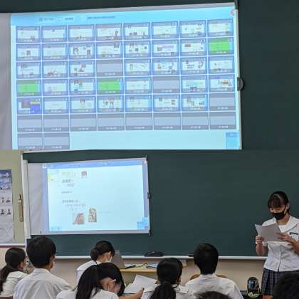 【技術】自己紹介カードの工夫した点などを、一人一人が発表していました。(1組)