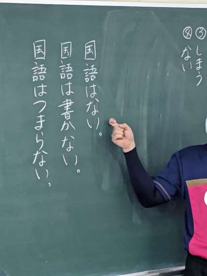 【国語】「国語はない」「国語は書かない」「国語はつまらない」文法で「ない」の違いについての説明です。実力テストなどでも出題されやすい問題です。みなさんは、区別がつきますか。詳しくは2,3年生で学習します。(1組)