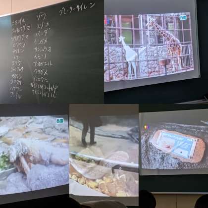 【理科】「上野動物園」「鴨川シ—ワールド」「海遊館」をみんなで巡るという設定です。たくさんのせきつい動物が出てきて、5つのなかまに分類していました。中には「グレーターサイレン」みたいに聞いたことのない動物もいました。「皮膚はどんな感じ?」という先生のヒントを聞いて分類していました。(3組)