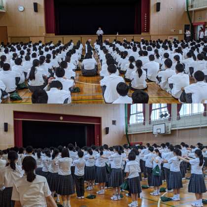 「登校時にあいさつをしっかりしましょう。」と言う呼びかけがありました。あいさつのできる大人になって欲しいと思います。あいさつができないと常識のない人と判断されることもあります。「八阪中学校の生徒はあいさつができる」という良い伝統があります。この良い伝統を受け継いで欲しいと思います。将来の自分のために素直に大きな声であいさつができるようになってください。