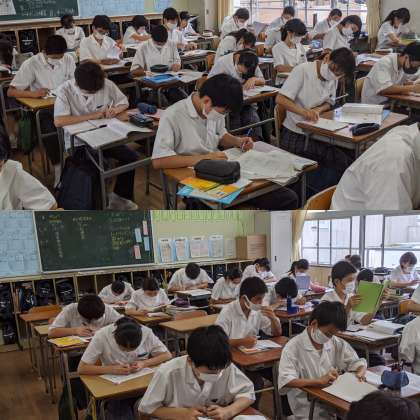 【理科】【英語】テスト勉強をしていました。「ノートをまとめる。」「問題集をする。」「プリントの問題を解く。」それぞれがテストに向けてしっかり勉強していました。(3・4組)