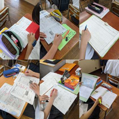 【理国英】明日に向けてテスト勉強をしていました。さすが3年生という集中力でした。教科の先生にしっかり聞いて、わからない箇所がないようにしてください。家庭でもしっかりしましょう。(2・3・4組)