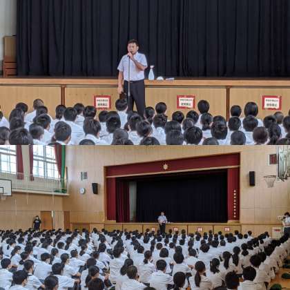 校長先生の話にもあるように「聴く姿勢」はとても大事です。プレゼン八阪・体育大会・芸術鑑賞・講演会などで多くの方から褒められることがあります。特に、芸術鑑賞ではプロの演者から「聴く姿勢」が素晴らしいと言う声も聴いています。学力の向上にもつながります。ますます聴く力を高めていきましょう。