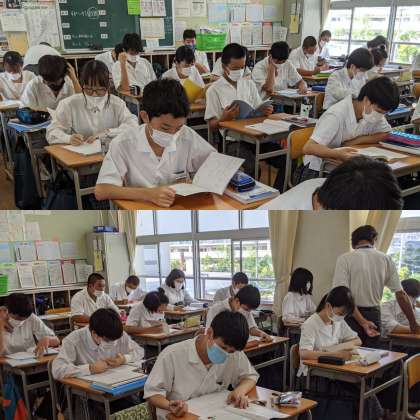 【数学】平方根の小テストに向けて、少し勉強する時間がありました。わからない所を質問して意欲的に学習していました。(3組)