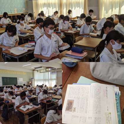 【国語】『壁に残された伝言』の朗読を聞いていました。(3組)