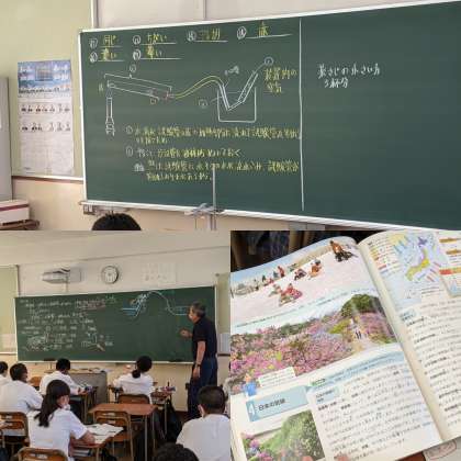 【理科】実験中に気を付けなければならない点の説明を聞いていました。(1組)