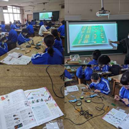 【技術】基盤にはんだ付けをしていました。火傷しないように慎重におこなっていました。(1組)