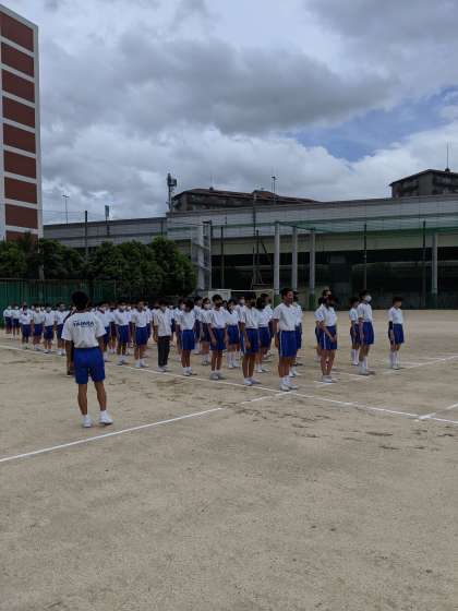 3時間目の授業の様子です。体育大会に向けて行進の練習をしていました。行進曲は、音楽科の先生のオリジナル曲です。(1、2組)