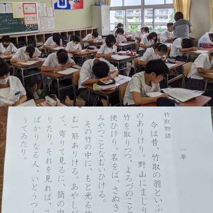 【国語】『竹取物語』を書写するための準備をしていました。(2組)