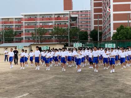 9月11日(金)6限に1年生の学年練習を行いました。開会式から閉会式までの一通りの流れを行い、体育大会の本番に向けて今まで以上に意識を高め練習をしています。少ない練習時間ですが、がんばって素晴らしいものを見せてくれると思います。体育大会まで残り7日!