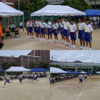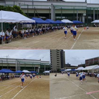 次は男子の1500m走です。いきなりのスタートダッシュ!最後までいけるのか?クラスの前を通るたび大きな拍手が響きます。その拍手に応えるために力いっぱい走ります。ゴールと同時により大きい拍手が沸きました。走り切った姿は輝いていました。