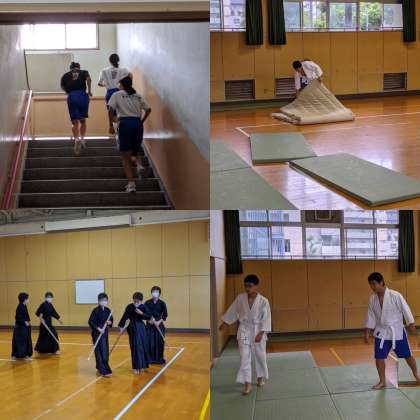 今日は一日中雨が降っていました。先週に体育大会がおこなえてよかったです。運動場の部活も校舎内でトレーニングです。2年生の文化行事の取組もおこなっていました。
