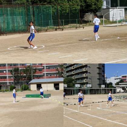 【体育】女子は『ハードル』『高跳び』『砲丸投げ』をしていました。(1、2組)