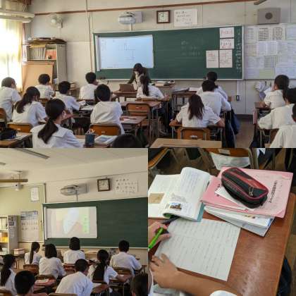 【数学】1次関数のグラフで範囲について学習していました。ほとんどの生徒が理解していました。(4組)