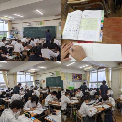 【数学】教科書の章の問題をしていました。わからない箇所は直ぐに教えてもらえます。(3組)