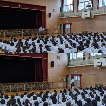 10月9日(金)5、6時間目に2年生の文化的行事『プレゼンテーションof75期生』がおこなわれました。各クラスの舞台発表がおこなわれました。それぞれのクラスが個性を発揮した発表でした。役者はマスクを付けた状態で大変だったと思います。ここまで演じ切るのは本当にすばらしいです。また、短い取り組み期間や色々な制限がある中での発表は大変だったと思います。来年度は全学年がそろった状態でおこなえることを願います。3年生として後輩にすばらしい発表を見せてください。楽しみにしています。