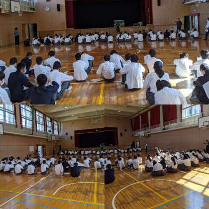 2時間目に今週おこなわれる修学旅行についての取り組みをしました。それぞれの活動ごとに整列する練習です。『バス』『自然活動』『ラフティング』など、みんな素早く行動することが出来ていました。当日も素早く行動できると思います。