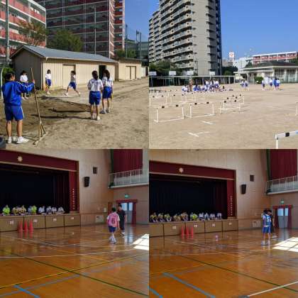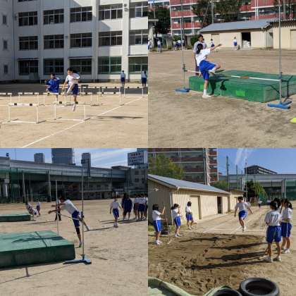 【体育】女子は『高跳び』『幅跳び』『ハードル』をしていました。男子はサロンサッカーをしていました。(1,2組)