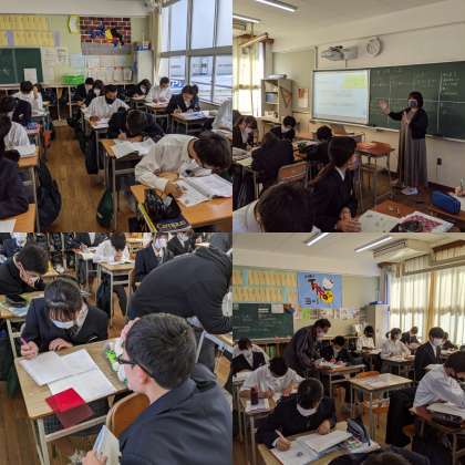 【数学】問題集やプリントをしています。先生も教えてくれますが、友達も教えてくれます。(1組)
