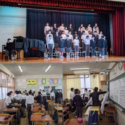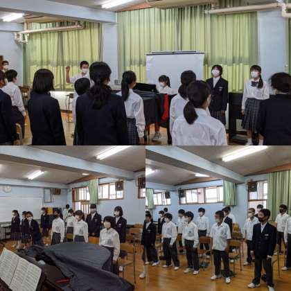 6時間目に文化行事の取り組み『合唱コンクール』に向けて練習をおこなっていました。各クラスそれぞれの場所で生徒中心にがんばっていました。本番に向けてがんばっています。マスクを付けての合唱になるので、普段よりさらに声を出さないといけません。