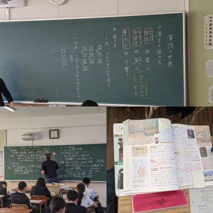 【国語】『漢詩の世界』漢詩を読む順番について学んでいます。ルールがわかればパズルを解く感じでできます。(3組)