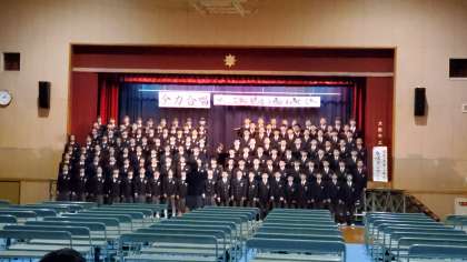 クラス発表のあとに、全体合唱を行いました。リハーサルでそれぞれの立ち位置を確認しただけで、全員の歌声を合わせたのは当日が初めてでした。しかし、そんなことを全く感じさせない歌声が体育館中に響き渡りました。今日一番の迫力で、鑑賞していたすべての大人が心を動かされました。76期生の想像以上のパワーと、これからの大きな可能性を感じました。