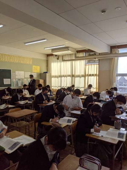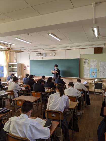 1時間目に2年3組で道徳の研究授業がおこなわれました。教育委員会からも先生が来られて授業に参加されました。
