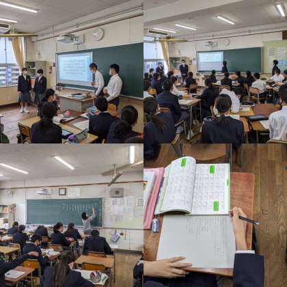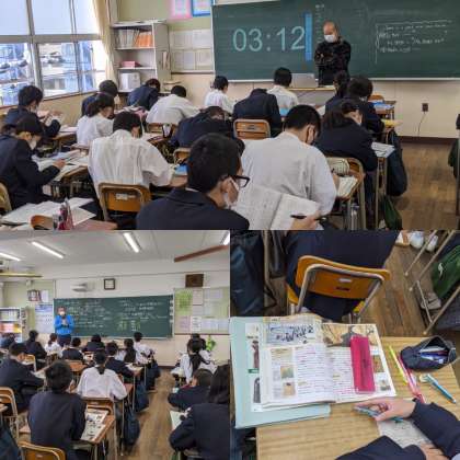 【英語】時間を決めて事前に配布されているプリントをしています。完成している生徒は次の課題に取り掛かっています。(2組)