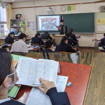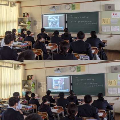 1時間目に3年4組で英語科の研究授業がおこなわれました。英語の短文を日本語に訳す問題をしていました。習っていない単語が沢山出てきて、辞書で調べたり、前後の文脈から予想して答えます。入試では知らない単語が出てきたとき、文脈から読み取る必要があります。後半はキング牧師の動画を見ました。目的は全体の流れを知ることと、キング牧師の演説を英語で聞き取ることです。