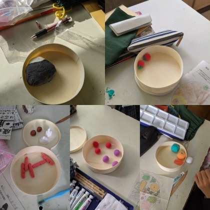 1時間目2年1組の授業です。粘土でお弁当を作っています。