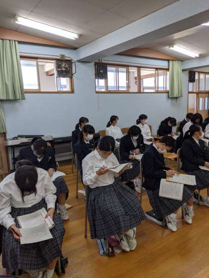5時間目に1年4組で音楽の研究授業がおこなわれました。