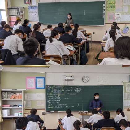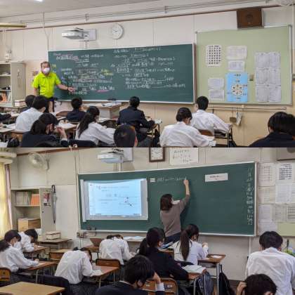 【理科】『オームの法則』です。黒板には直列と並列が混ざった回路図が書かれています。回路図を読み取ることはできていますか?(2組)