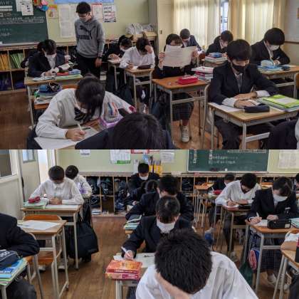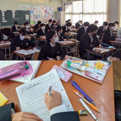 【英語】長文読解のプリントをしています。入試に向けて読めるようにしていきましょう。(1組)