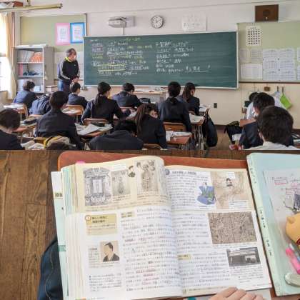 【社会】杉田玄白の『解体新書』伊能忠敬の『日本地図』などの話をしていました。歩いて日本地図を作るって本当にすごいですね。(2組)