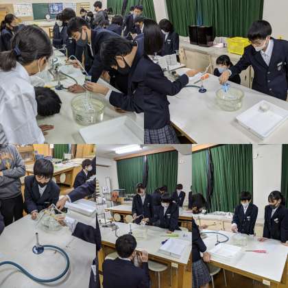 【理科】蒸留の実験で、お酒を水とアルコールに分けています。(2組)