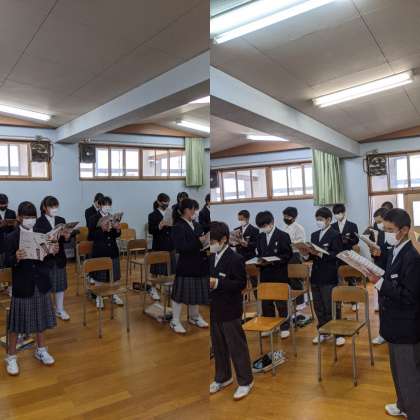【音楽】『カリブの夢の旅』『朝の風に』の曲を歌っています。先生から歌い方のアドバイスを受けながら進んでいきます。(1組)