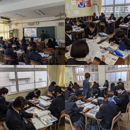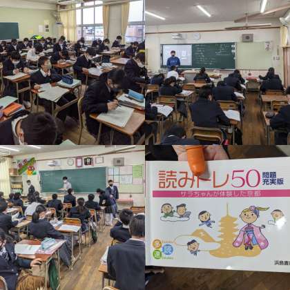 【英語】授業の最初に『読みトレ』から出題される長文の小テストをおこないます。(3組)